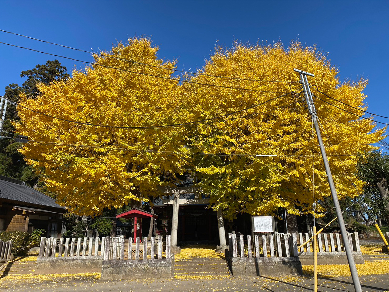 お昼休み現場事務所付近をふと散策、立派なイチョウが目印の神社があります。
