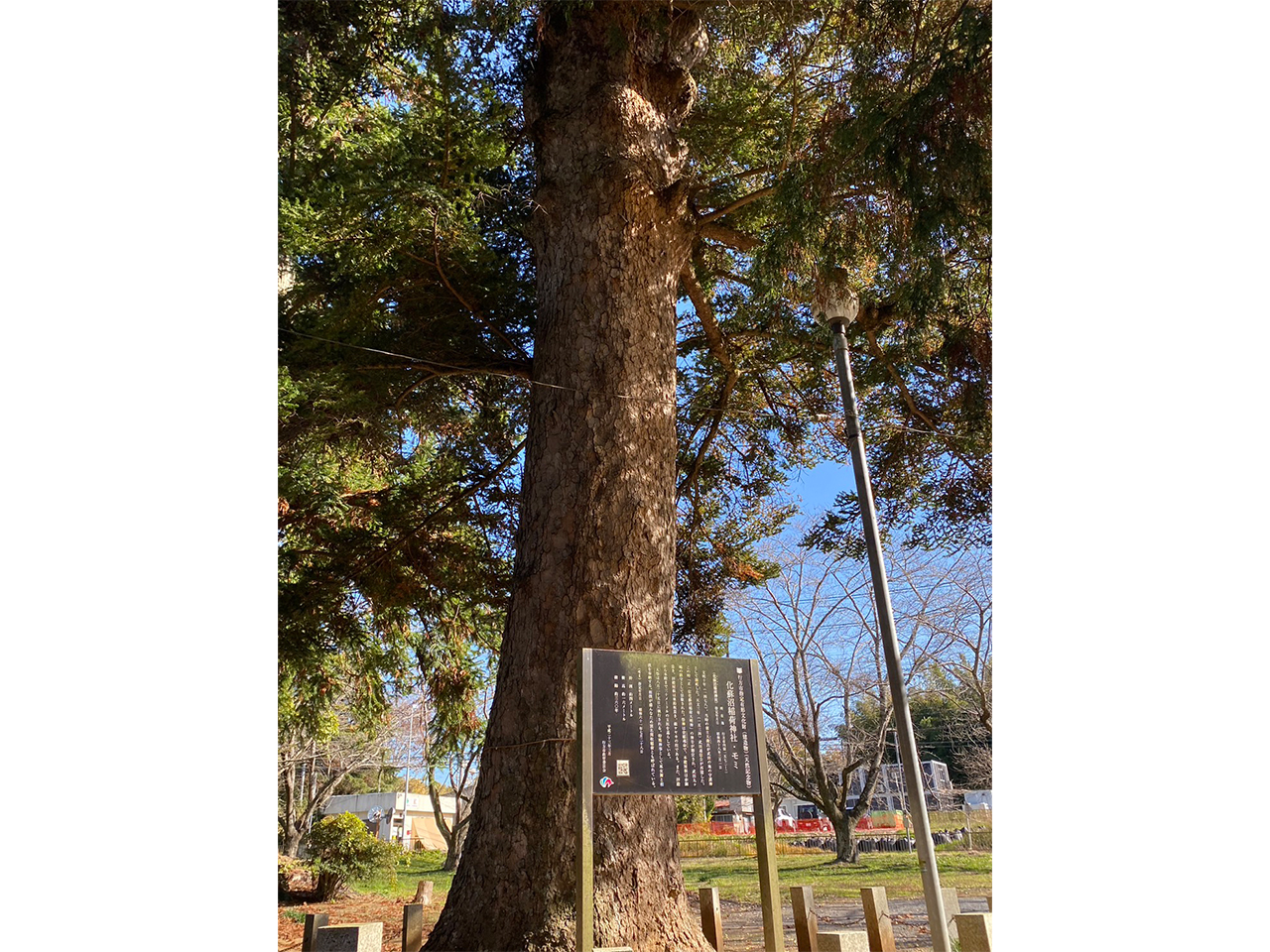 樹齢約360年と私達の大先輩にあたります。今日まで雨の日も風の日も負けずに立派に立つ「モミ」を見て思わず脱帽。(※ヘルメットではありませんよ)