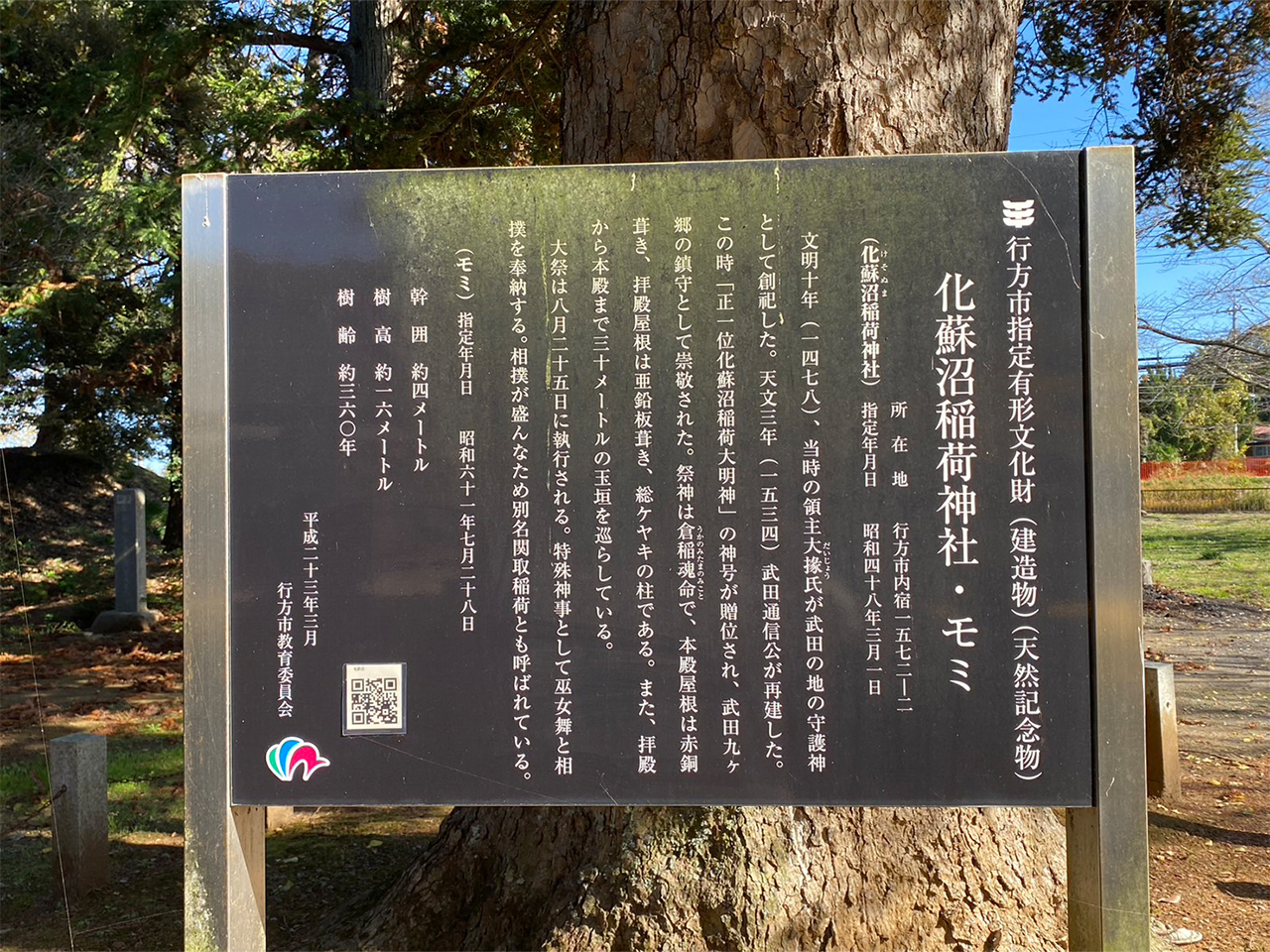 その名も「化蘇沼稲荷神社」。行方市指定有形文化財の一つになり、歴史ある神社になります。