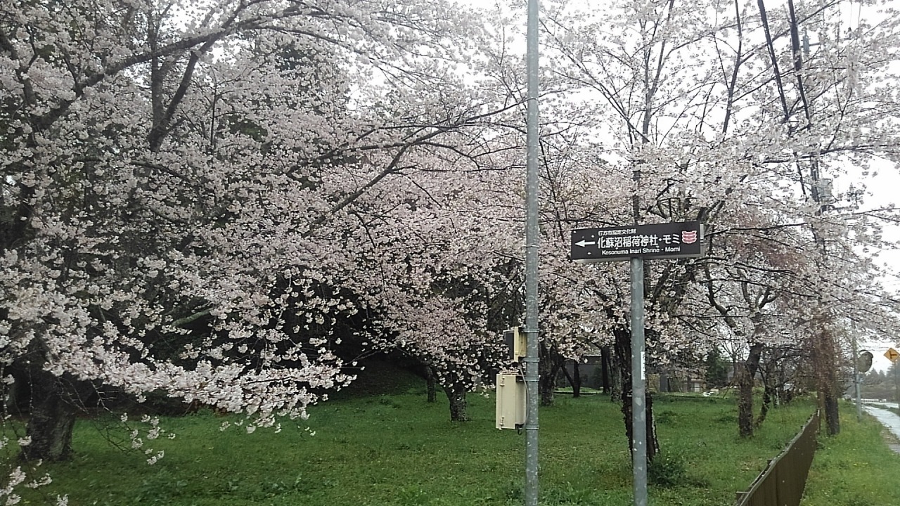津々と降っていた雨が上がり、休憩がてら現場事務所の目の前にある化蘇沼稲荷神社へ桜を見に行きました。