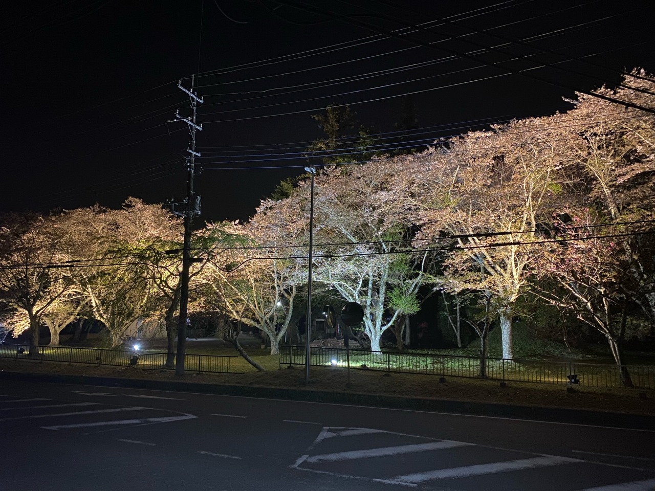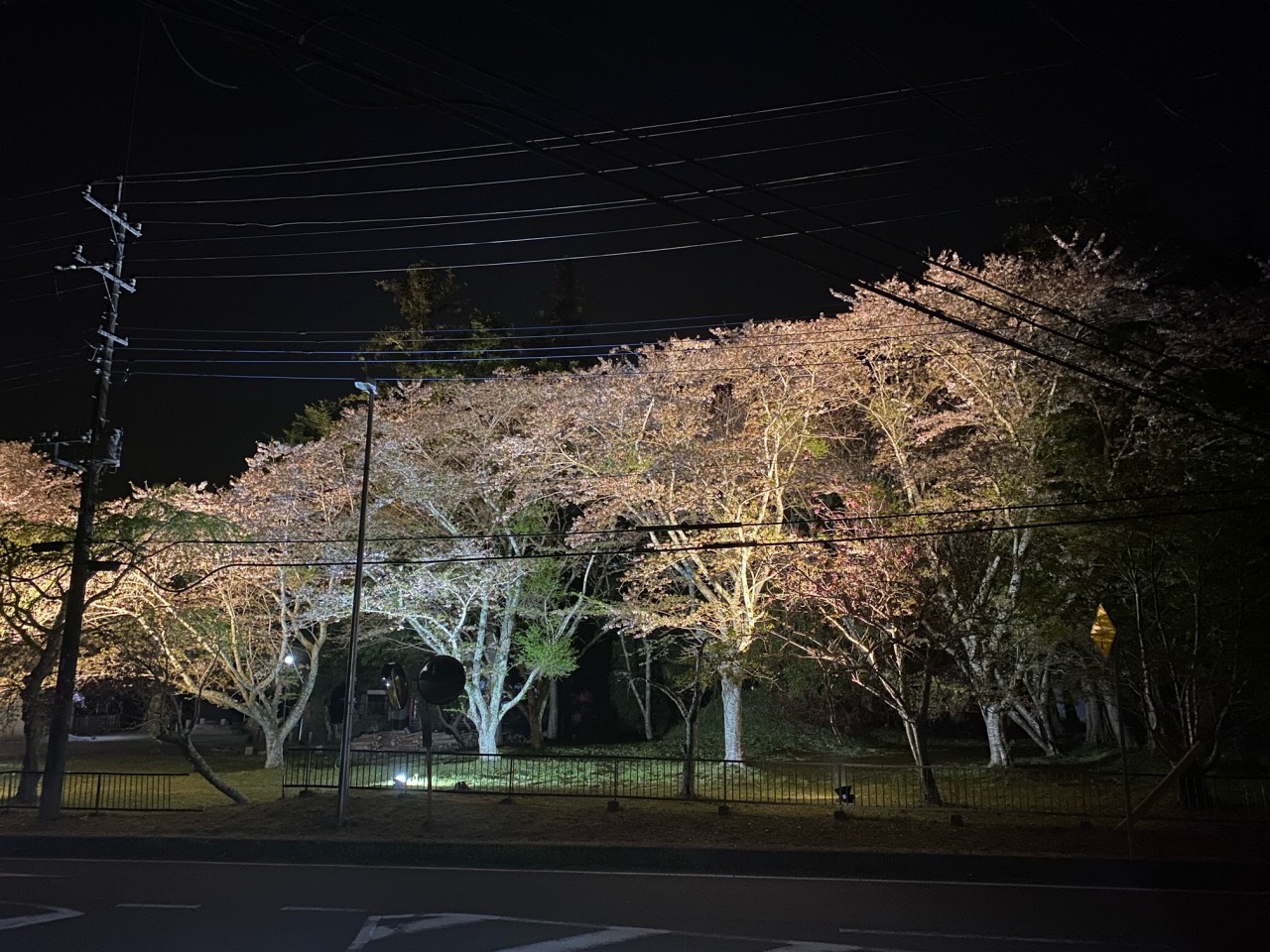 夜は桜がライトアップされ、昼間とはまた違う幻想的な空間に様変わりしていました。