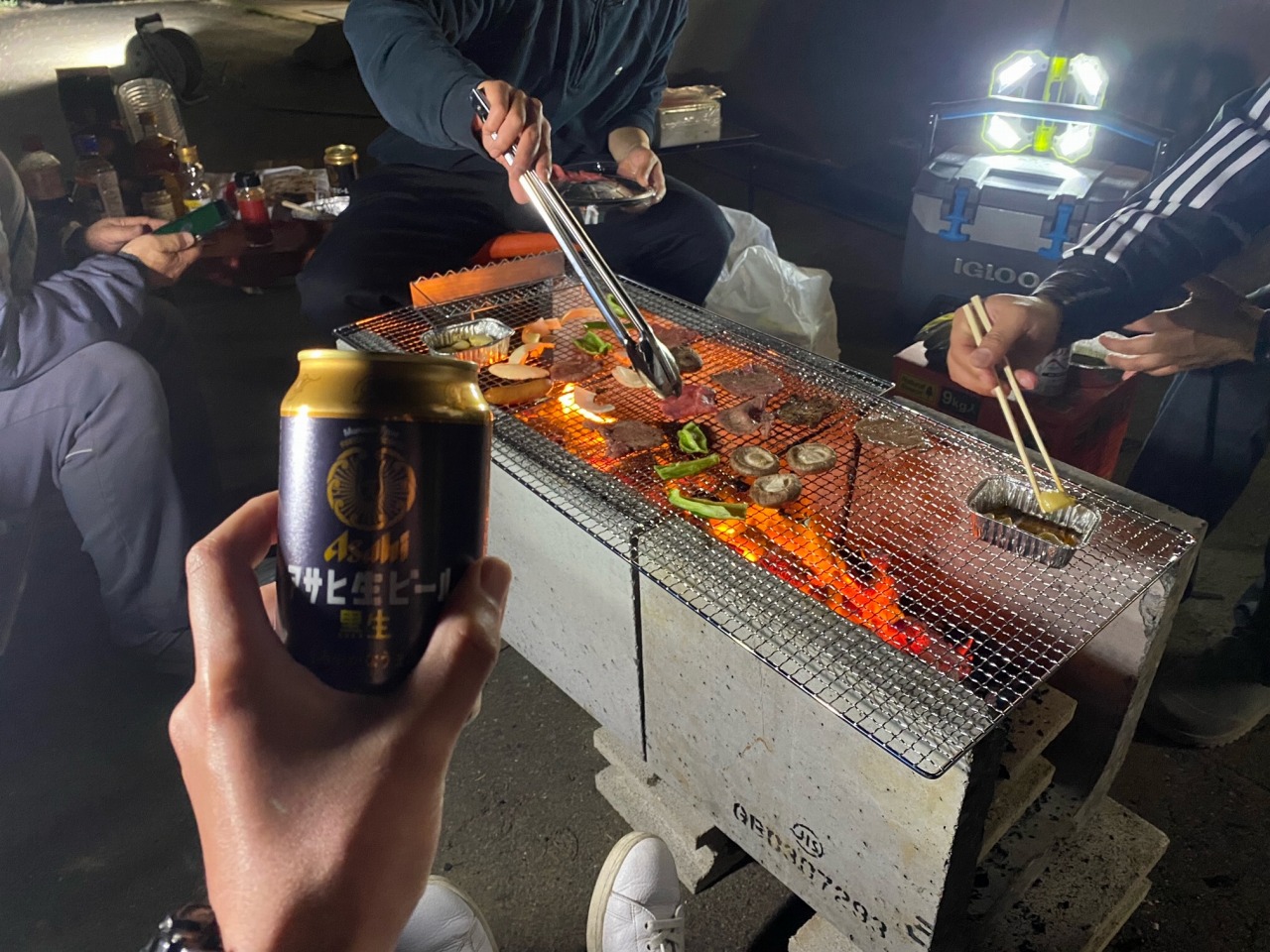 花見をするなら今しかないっ!ということで現場事務所前のスペースで今宵はLet’s BBQ♪