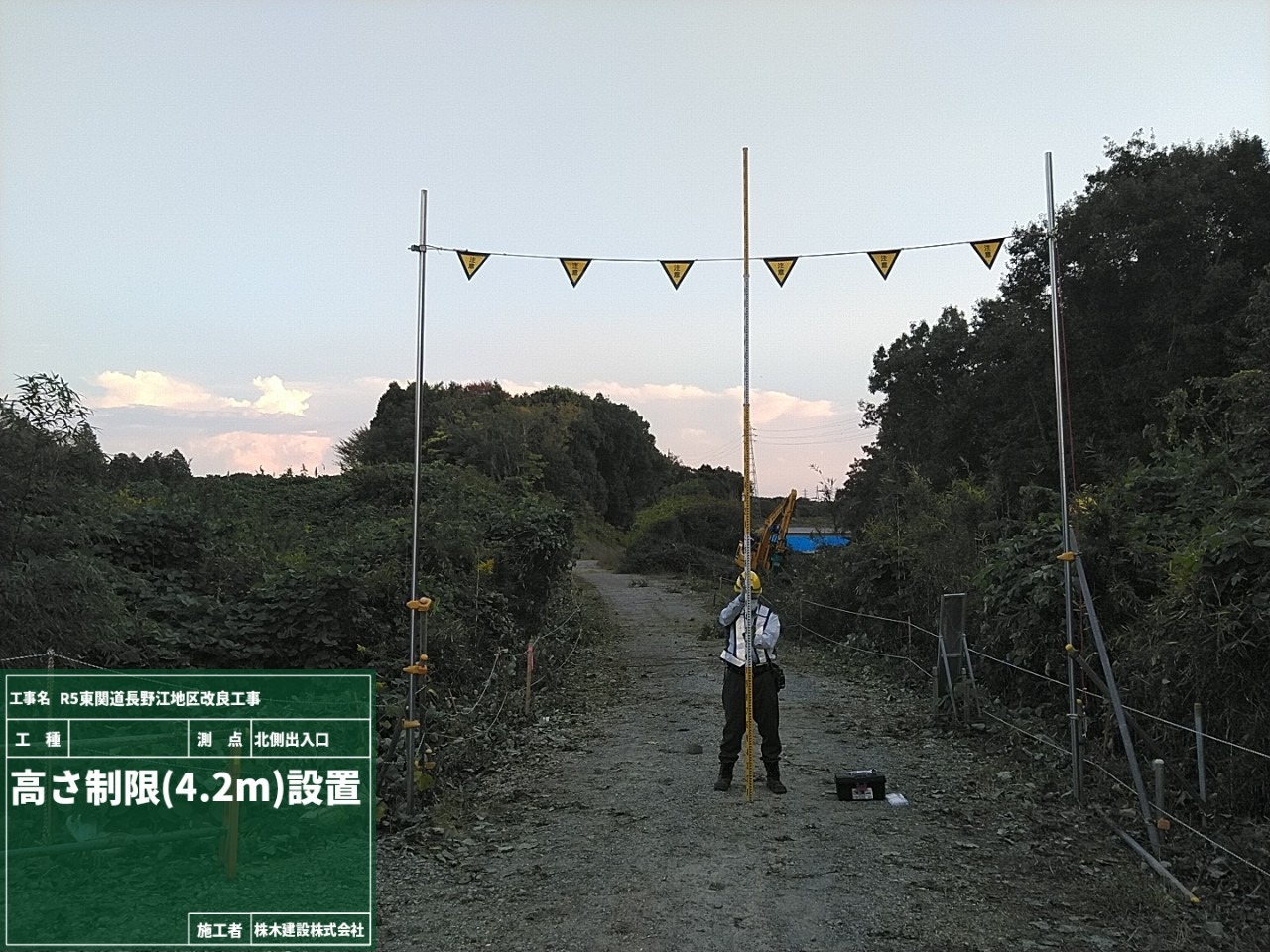 架空線防護管などもありますが、シンプルに高さ制限を設けることで架空線と重機の接触は0になります!