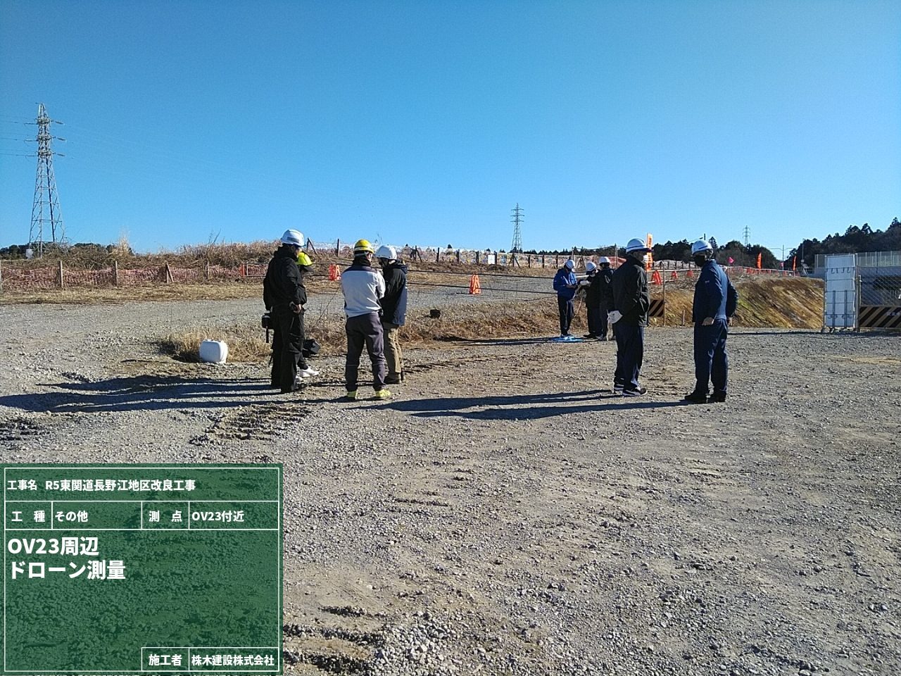 写真からわかるように、工事写真を使って施工場所の説明、実際現場へ出向いてドローンを使った施工場所の説明。