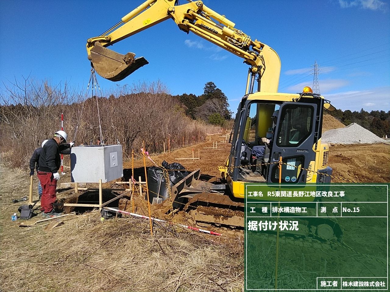 据付完了後は、3枚目の写真のように埋戻し作業を行います。