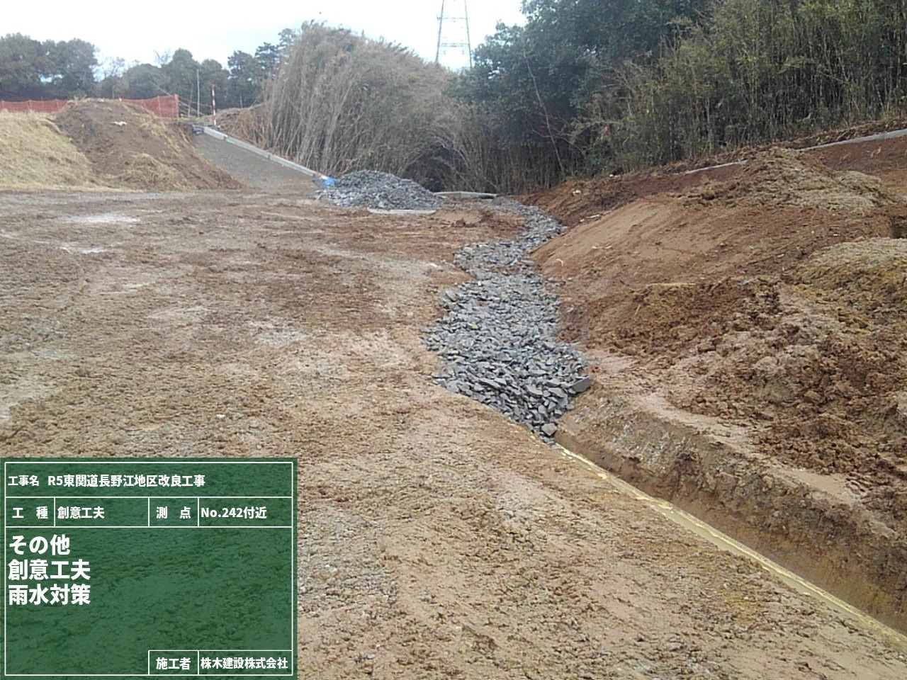 そこで、創意工夫として施工箇所の雨水対策を行いました。