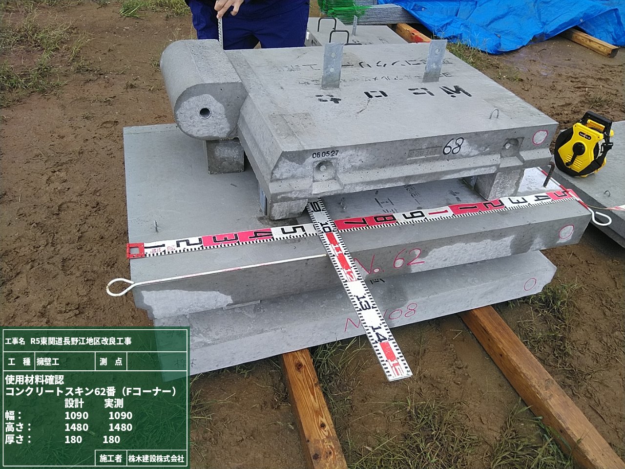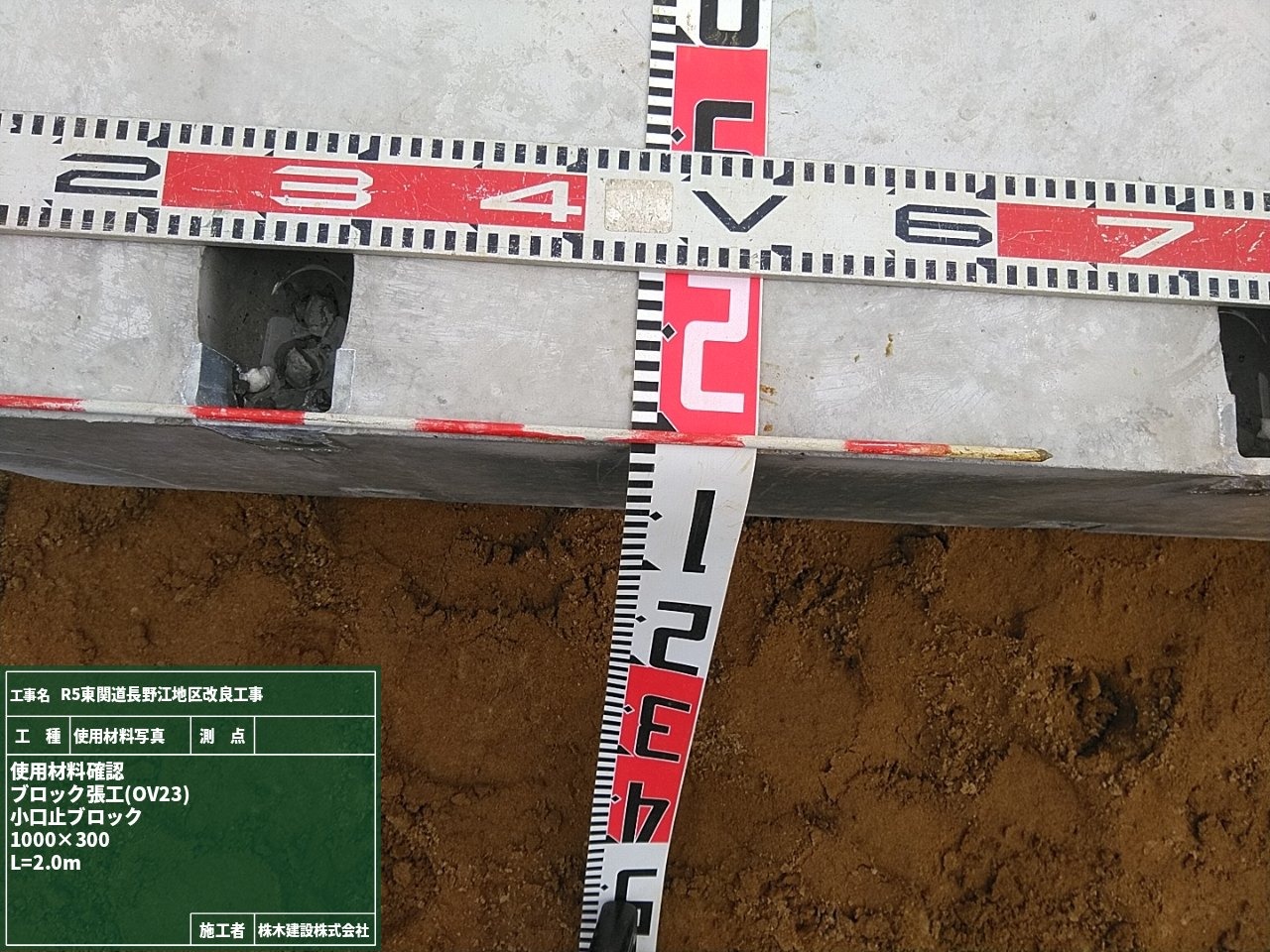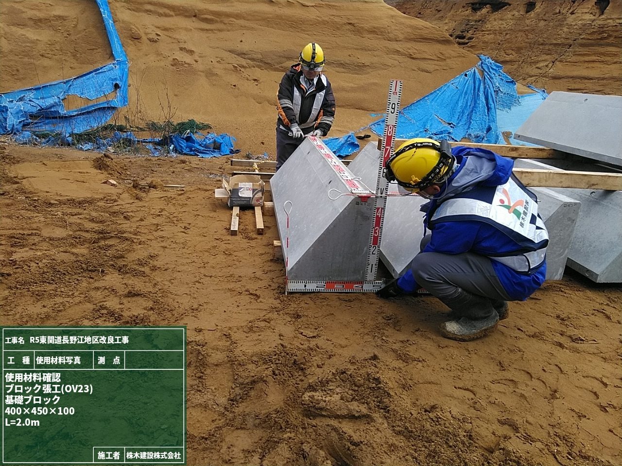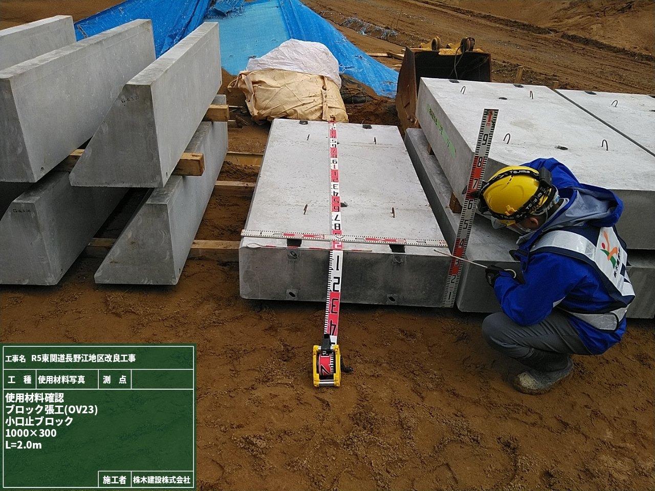 今回はブロック張工で使用する材料の検査を行いました。検査した記録は材料検査簿にして現場で管理しています。