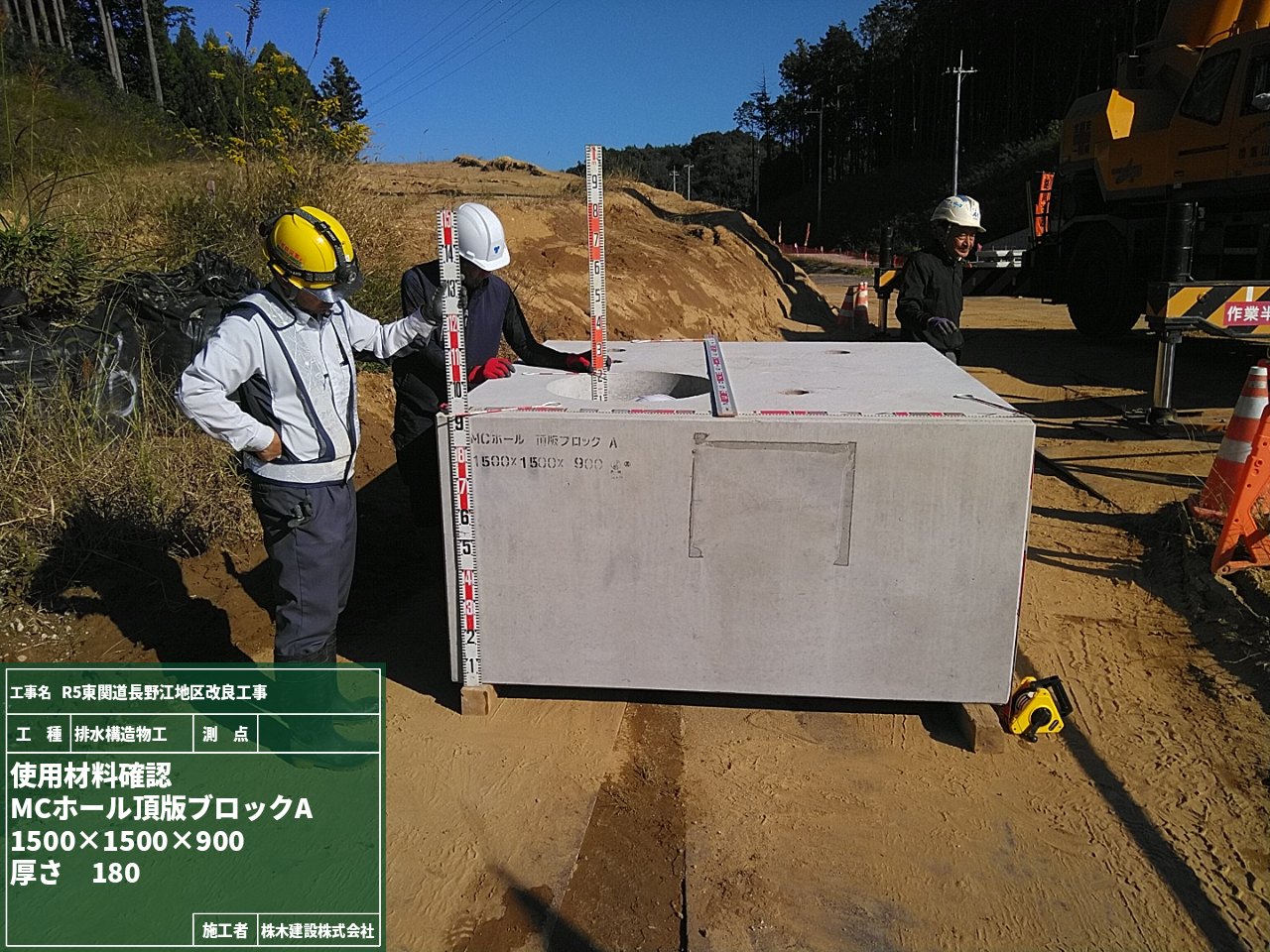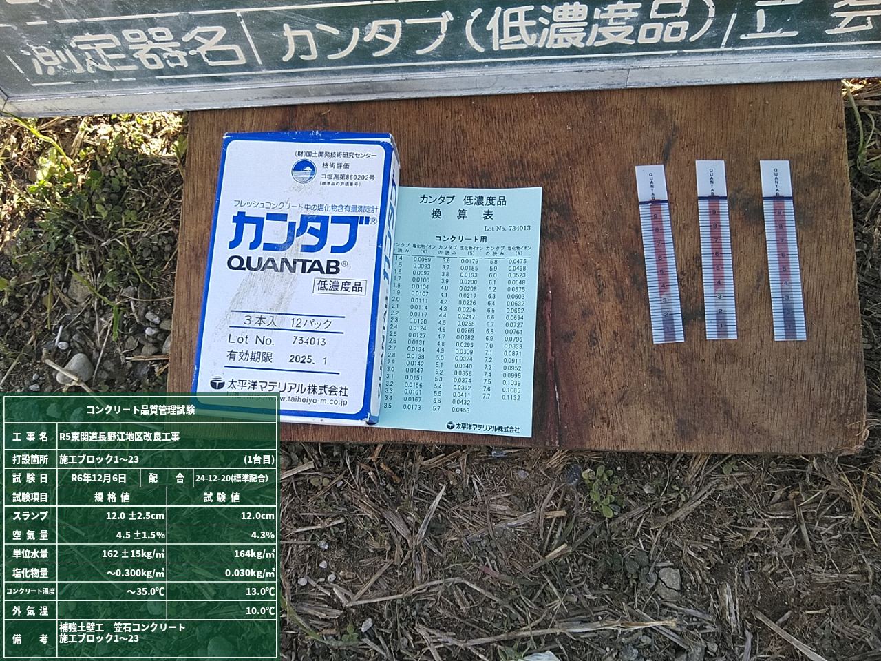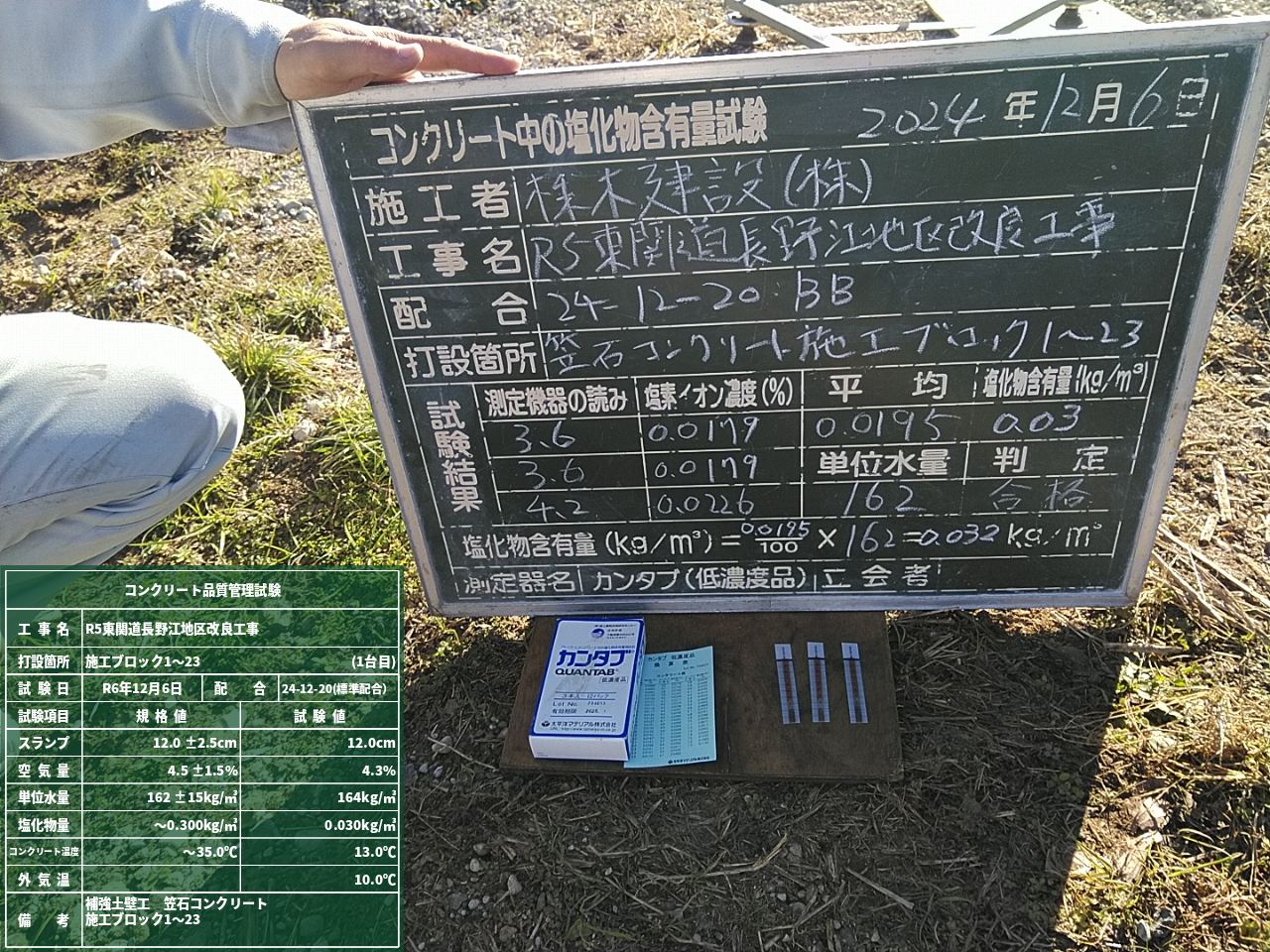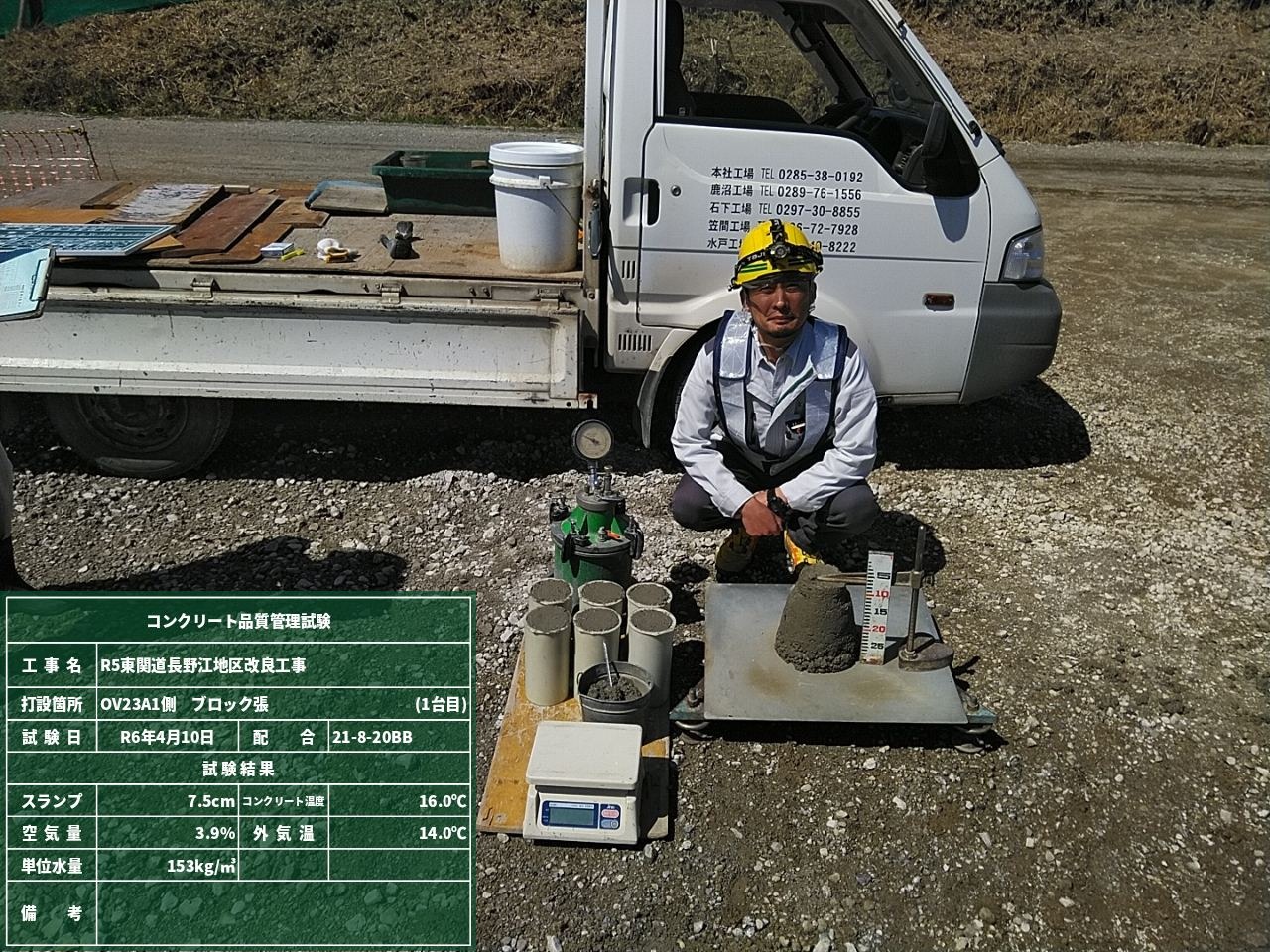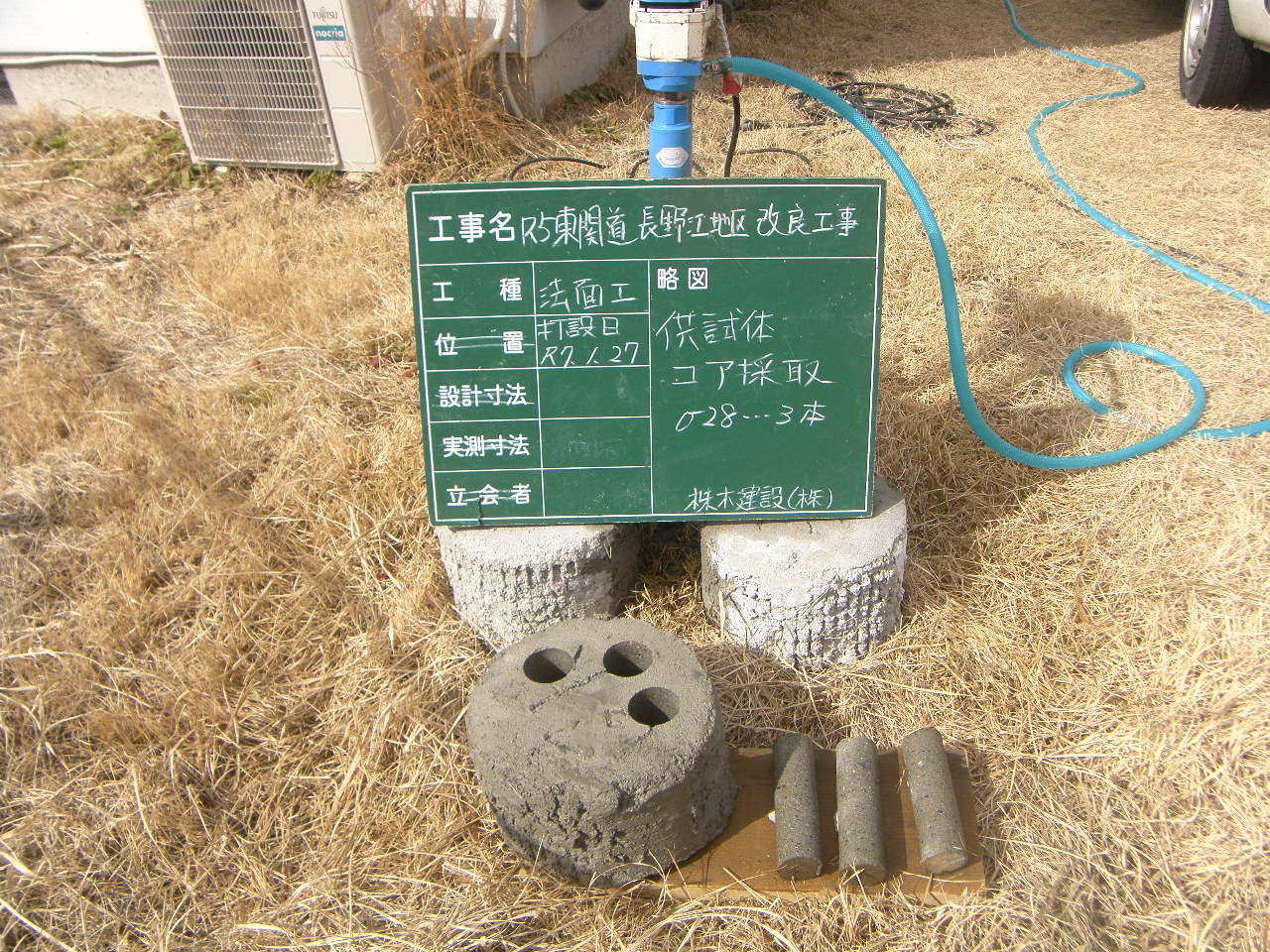 話は変わり、今回の現場では発注者立会いのもと使用した資材の検査を行いました。