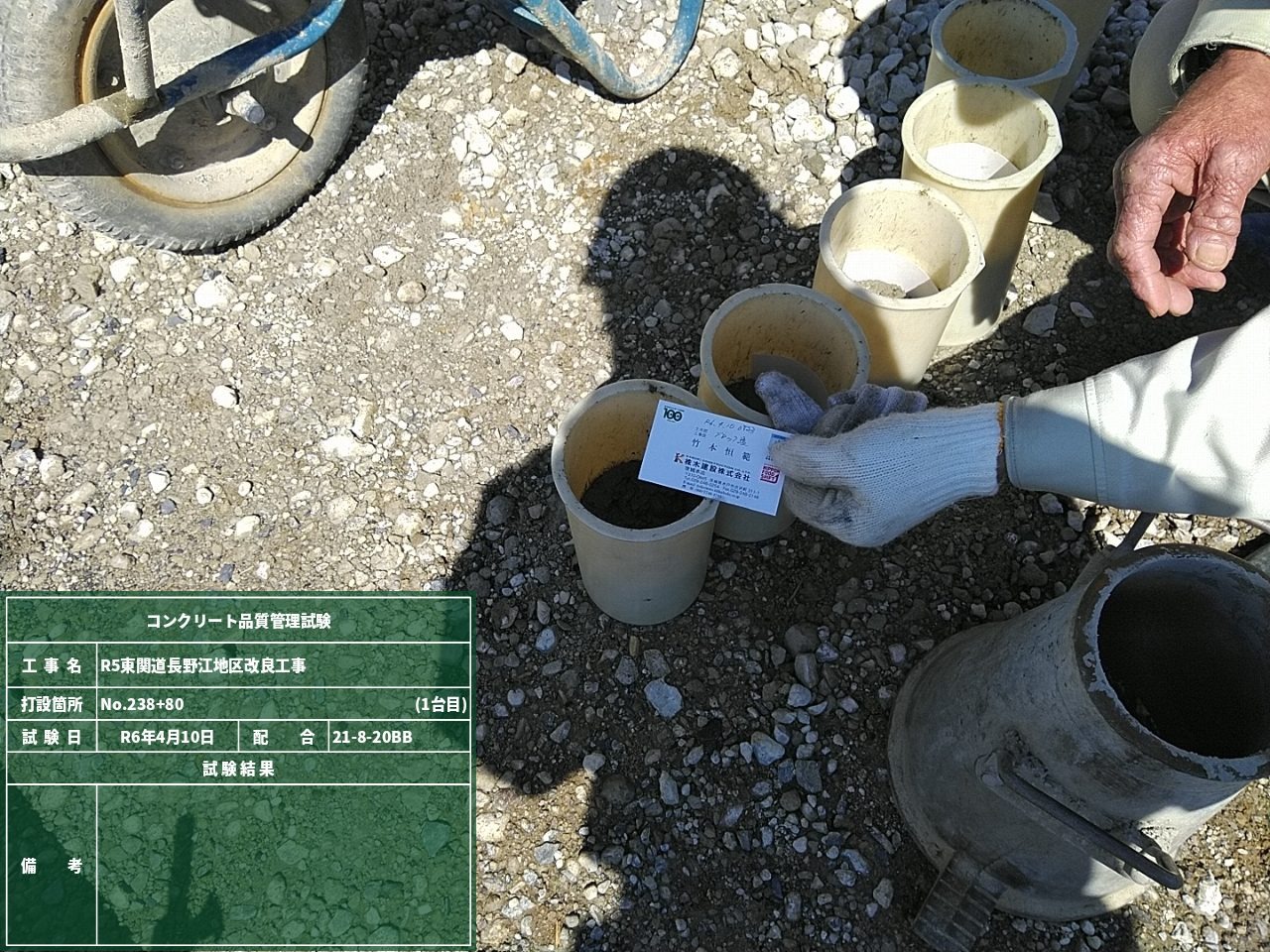 その証拠がこちら、3枚目の写真です!この名刺こそ、まさに、当現場の証なのである~~~~!(テストピースの中にそっと忍ばせてます)