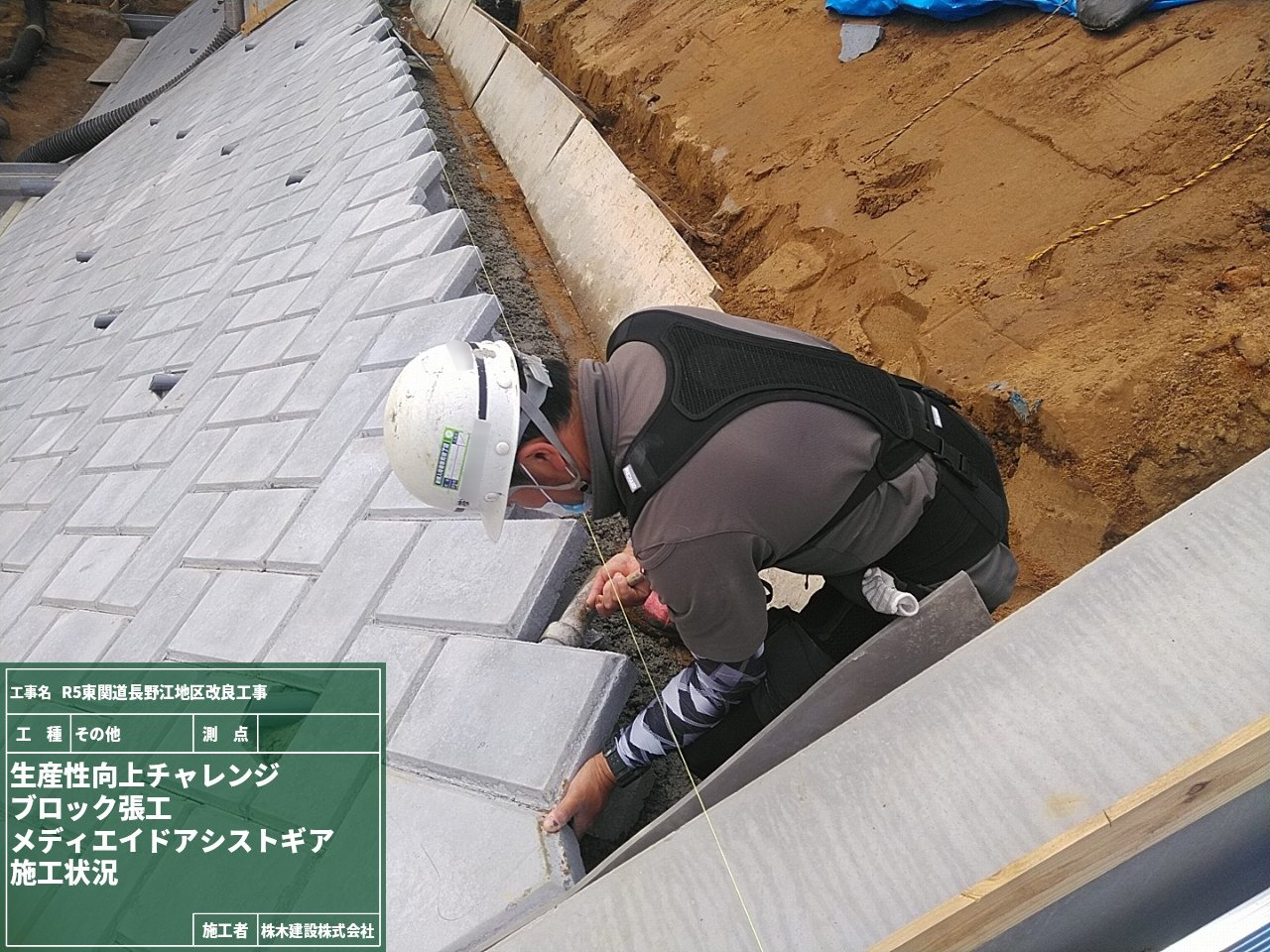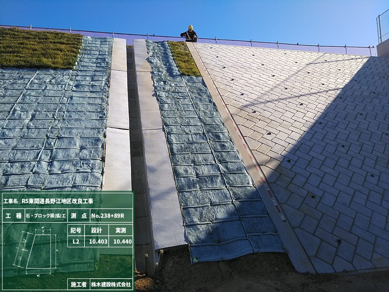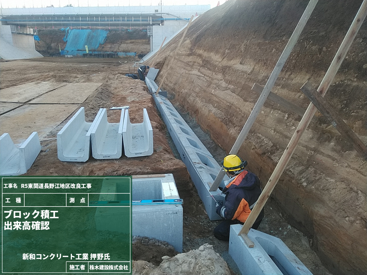 ブロック積の出来形確認を行っている様子をご紹介・・・