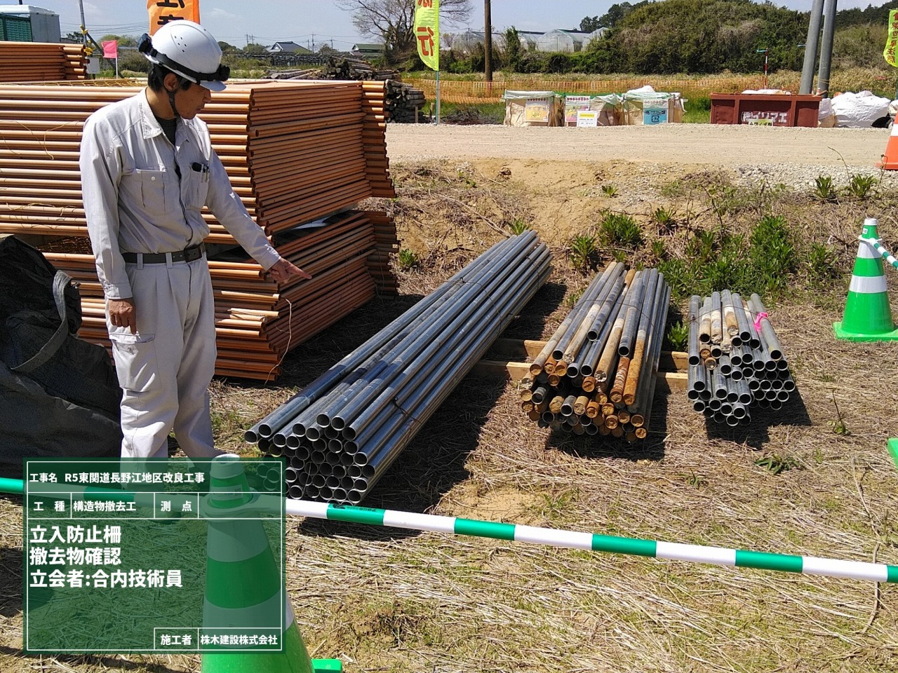 施工箇所から撤去・集積してきた資材の数量を確認し、適正に処分します。