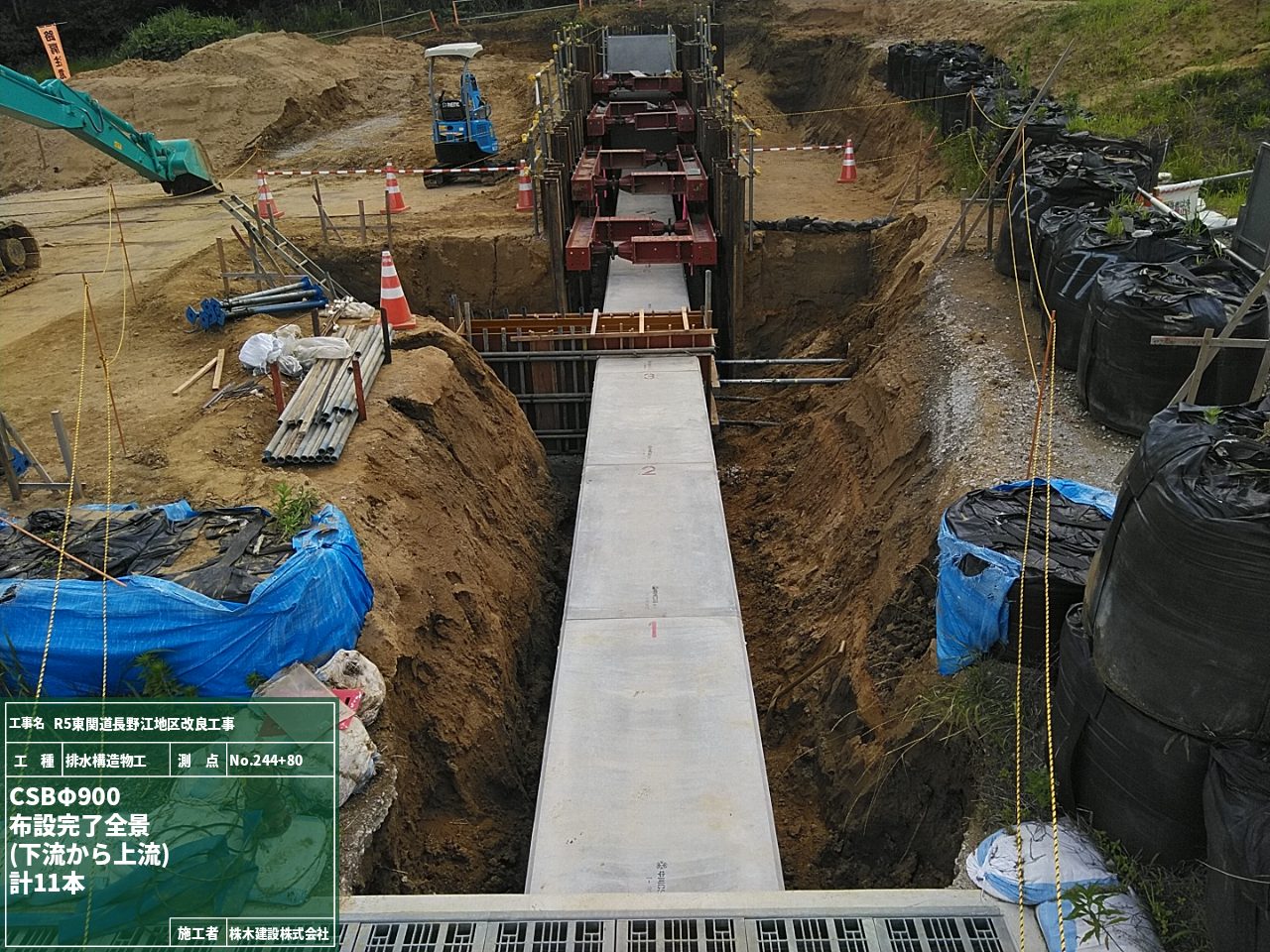 先週から行っているプレキャストU型側溝の据付作業も、今週前半完了しました。