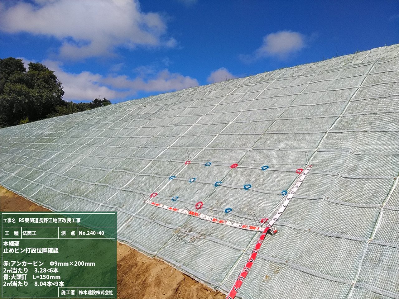 ラス網は法面全体を一体化させるため、途中でアンカーピンを打って固定するのですが、