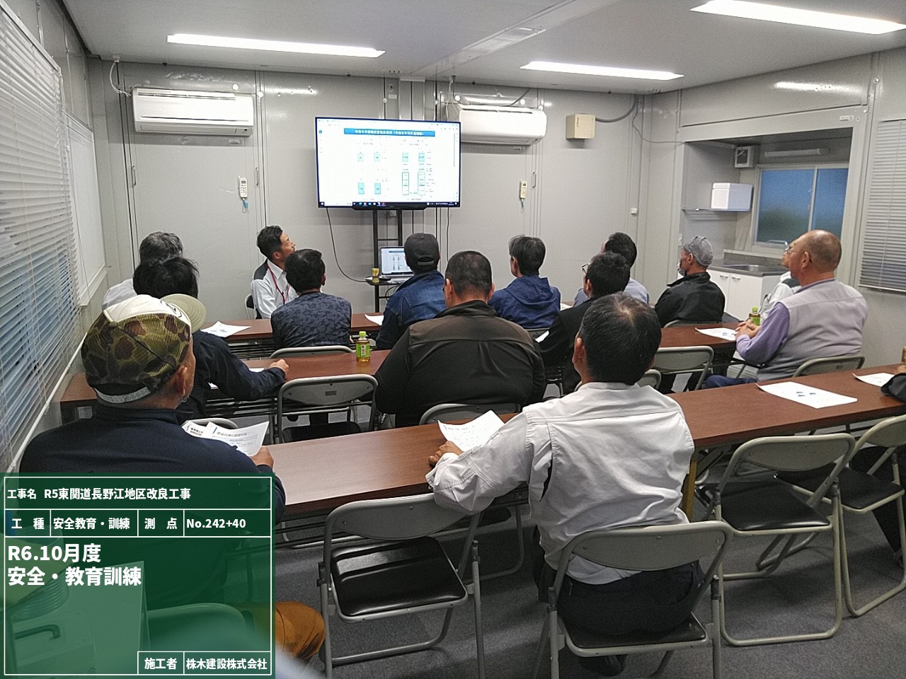 無事リフォームを終え社旗を掲げました。これにて現場事務所設営が完了となります。