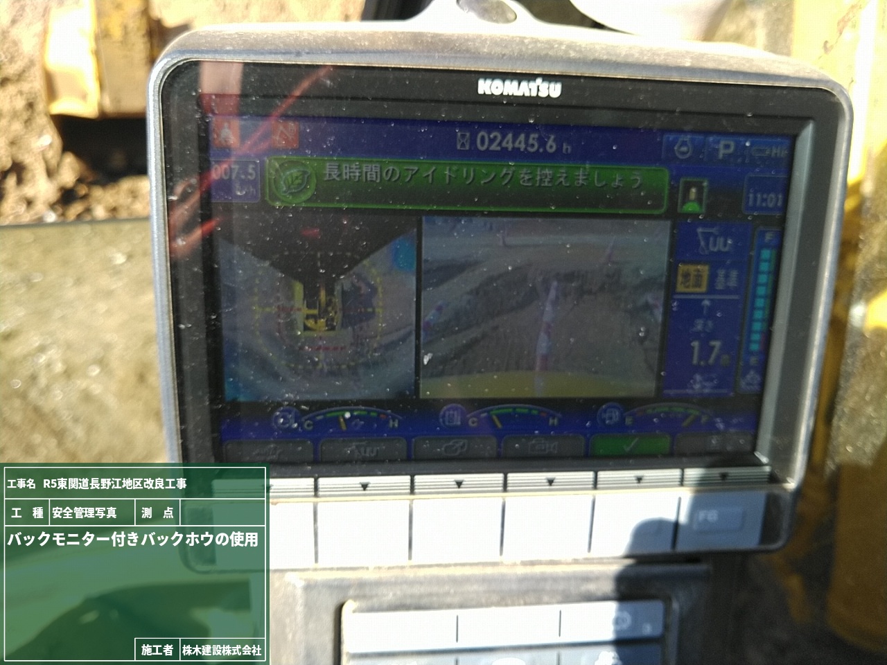 重機からは写真のようにブレード位置がいつでも確認できるようになっています。