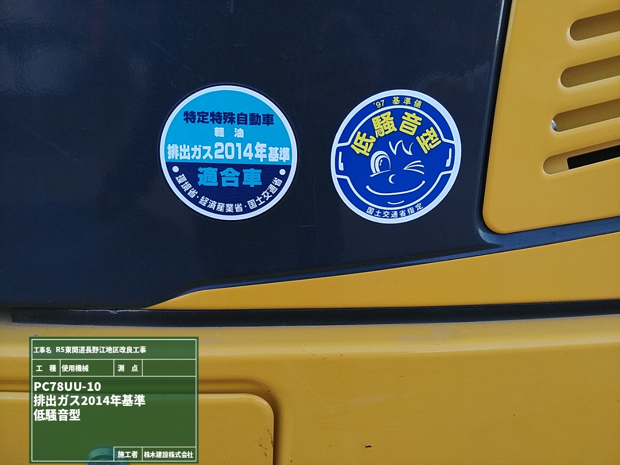 こちらは工事に伴う騒音・振動が相当程度軽減された建設機械である証です!