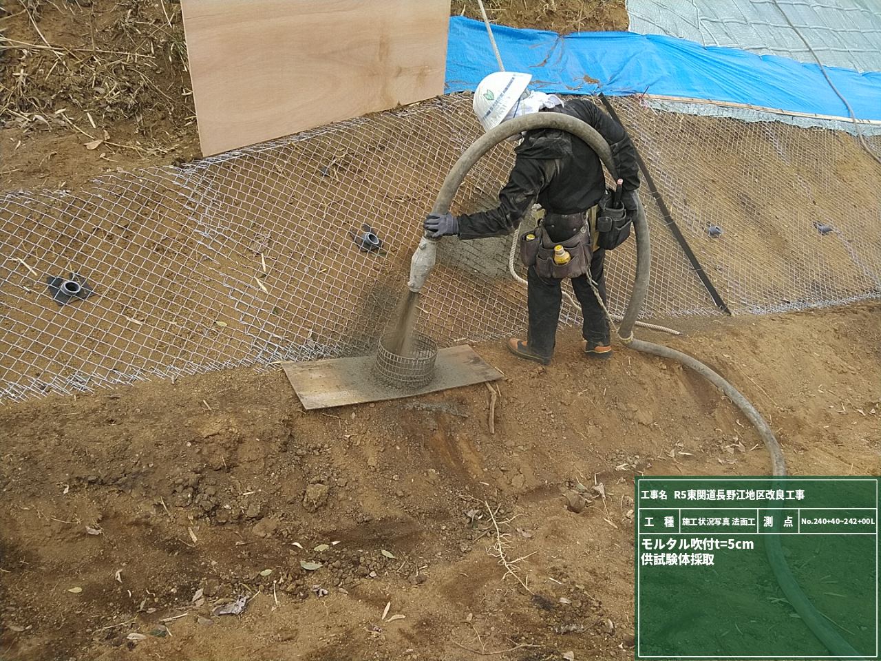法面工もいよいよ大詰めです!吹付を行うための作業がスタートしました。