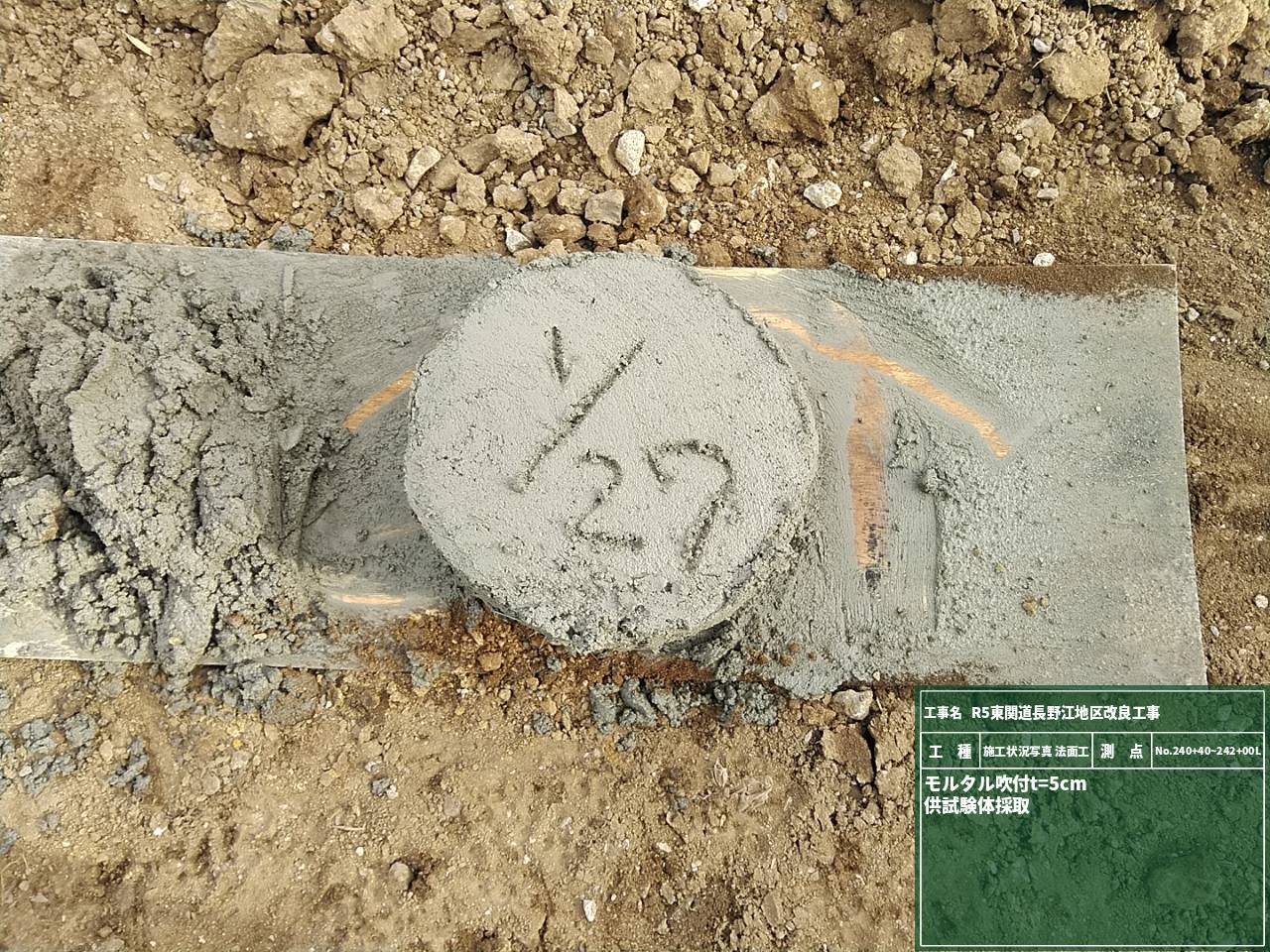 吹付したモルタルが規定の強度が出ているかテストピースを採取して試験をします。